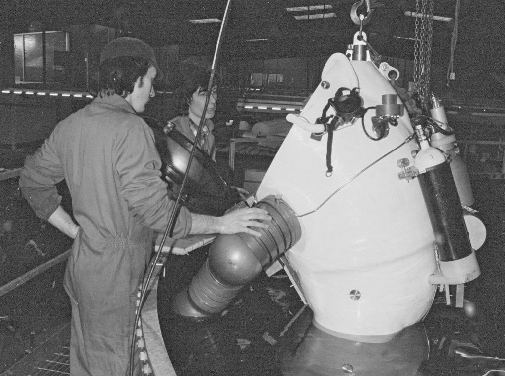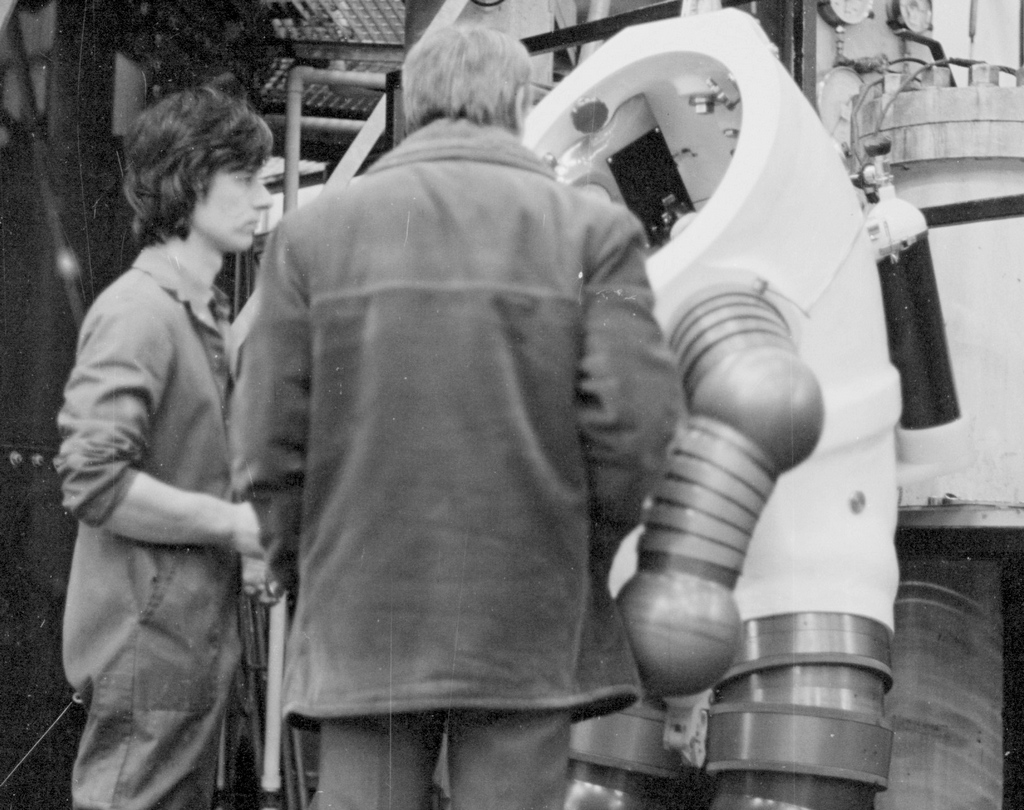 Richard notes that circa 1978 the TRITONIA suit arrived at the RNPL workshop where some minor maintenance was carried out prior to a series of test dives in the tank at AEW with RNPL staff.